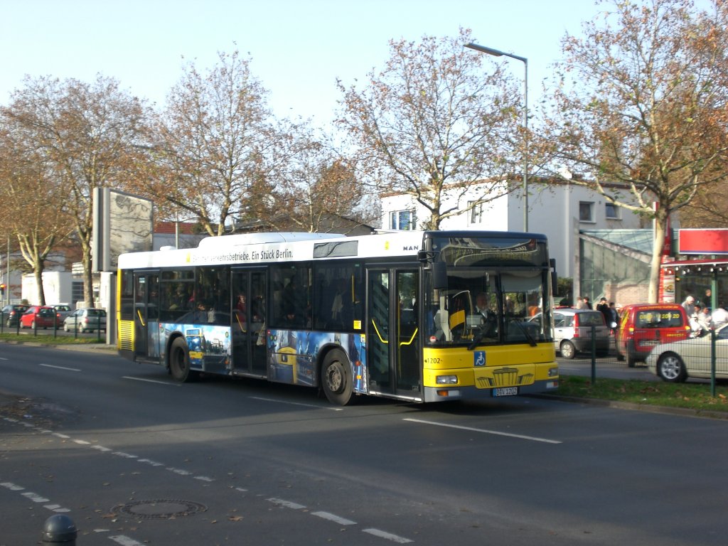MAN Niederflurbus 2. Generation auf der Linie 277 nach Marienfelde Stadtrandsiedlung am S-Bahnhof Plänterwald.