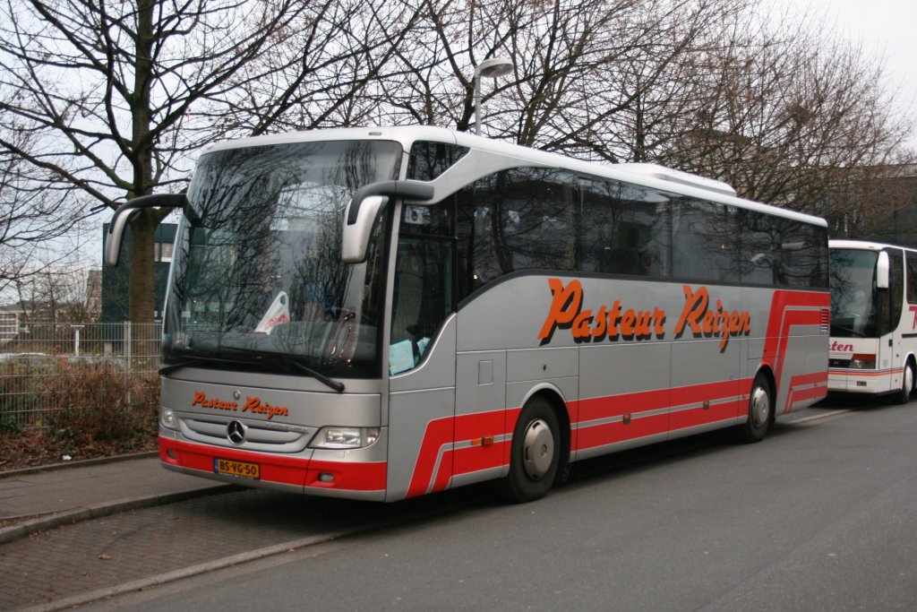 Mercedes O405 von Pütz Omnibusbetrieb GmbH an Bergisch Gladbach S am 11.12.09. Es handelt sich um Wagen 457 bei der Pause