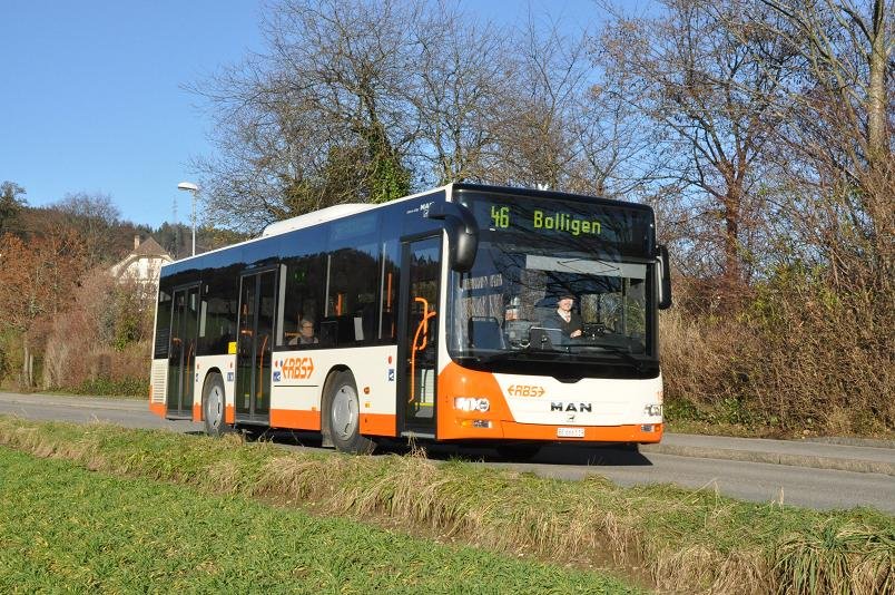 RBS, Worblaufen Nr. 19/BE 666'119 MAN am 9. Dezember 2009 zwischen Habstetten und Bolligen.