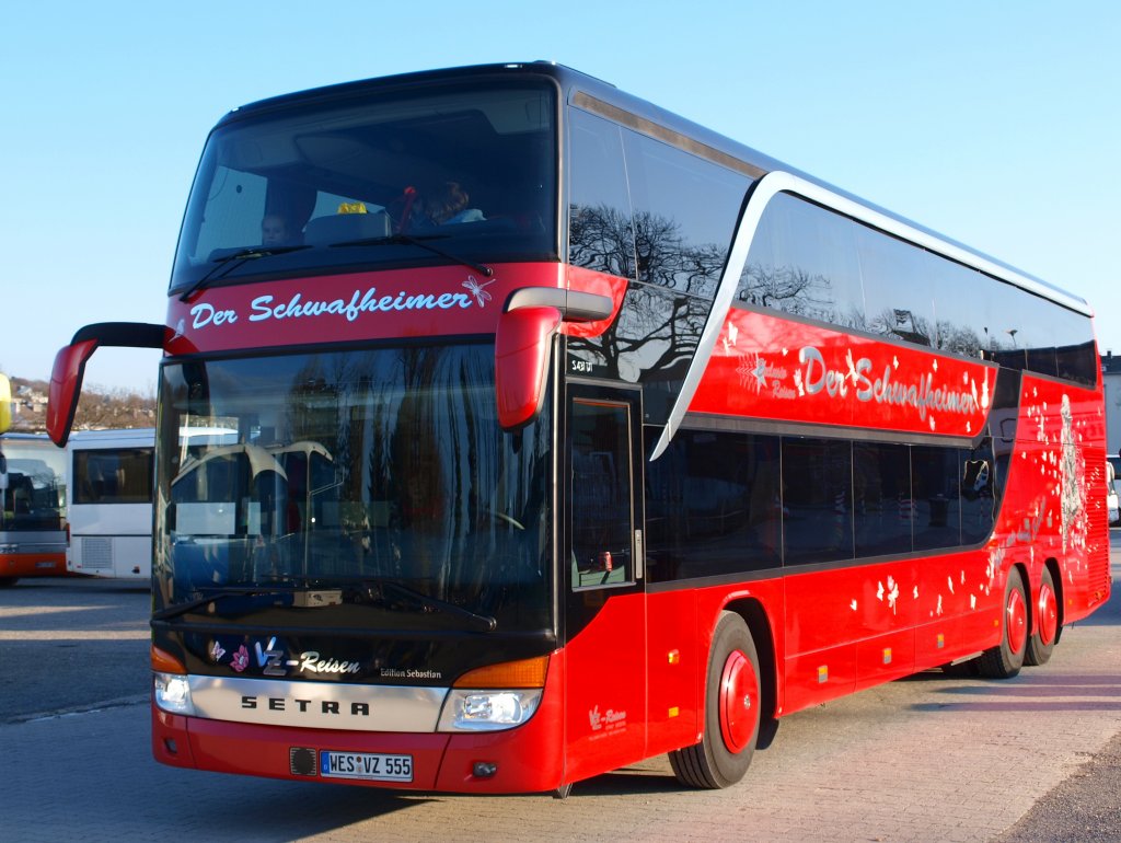Setra S341TD auf dem Busparkplatz für die Besucher des Aachener Weihnachtsmarkts.