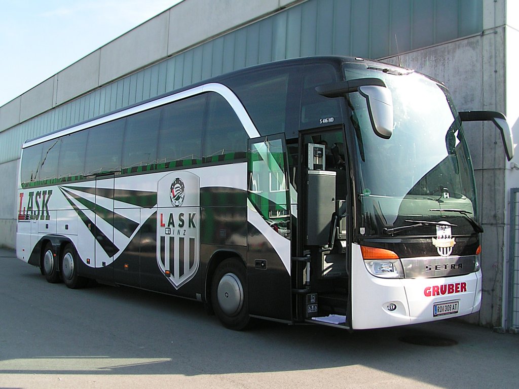 SETRA_S416HD,Mannschaftsbus des Fussballvereines LASK vor den Toren der "Keine-Sorgen-Arena" in Ried i.I.;090927