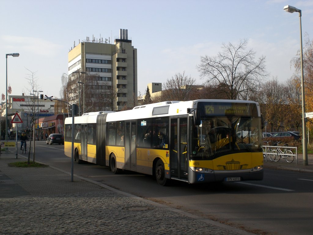 Solaris Urbino auf der Linie 124 nach Alt-Heiligensee an der Haltestelle Eschbachstraße/S-Bahnhof Tegel.