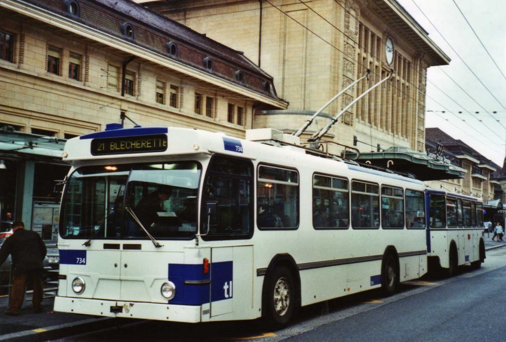 TL Lausanne Nr. 734 FBW/Hess Trolleybus am 19. November 2009 Lausanne, Bahnhof