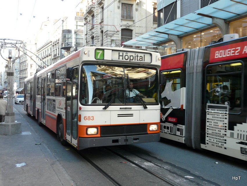 TPG - NAW-Hess-Siemens BGT 5-25 Nr.683 unterwegs auf der Linie 7 in der Stadt Genf am 11.12.2009