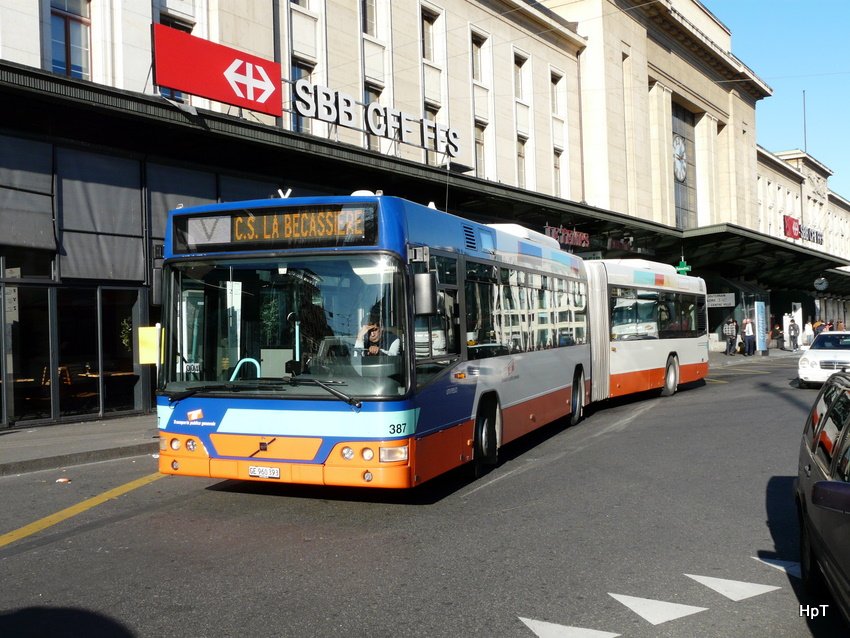 TPG - Volvo 7000 Nr.387 GE 960393 vor dem Bahnhof Genf am 11.12.2009
