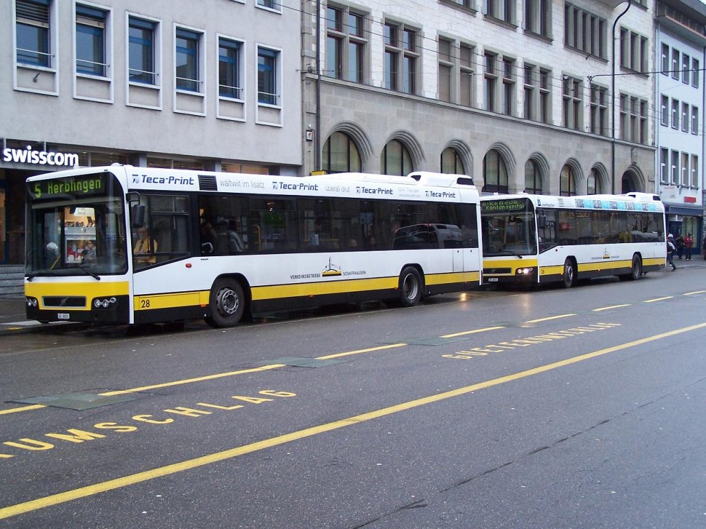 Zwei Volvo 7700, Wagen 28 und 26, am Bahnhof Schaffhausen am 10/12/09.