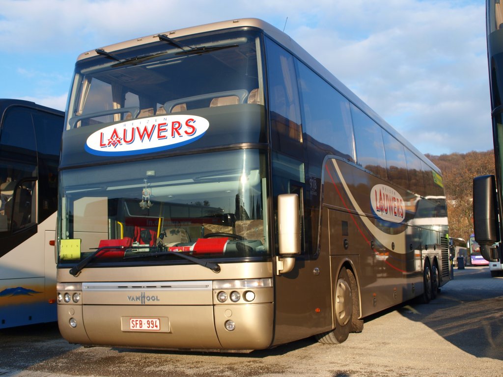 Belgischer van Hool T918 Altano auf dem Busparkplatz für die Besucher des Aachener Weihnachtsmarkts.