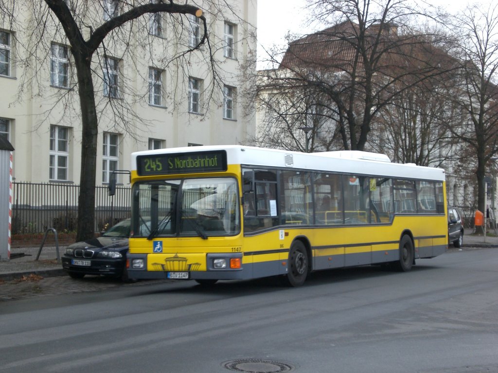 MAN Niederflurbus 1. Generation auf der Linie 245 nach S-Bahnhof Nordbahnhof an der Haltestelle Hertzallee.