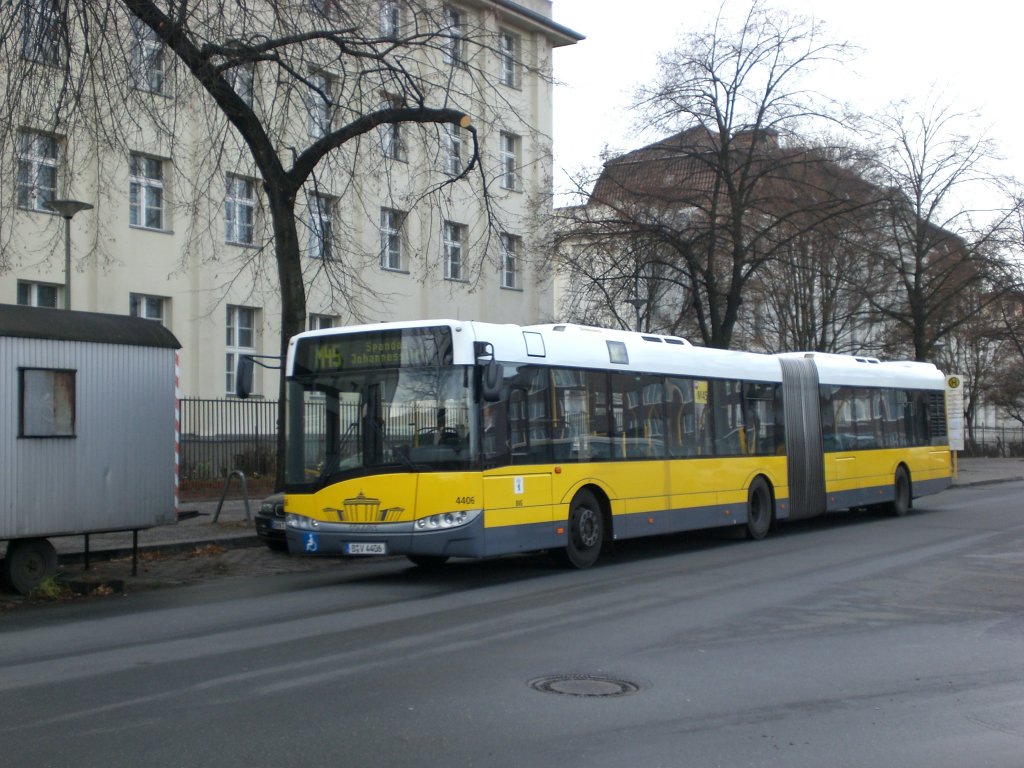 Solaris Urbino auf der Linie M45 nach Spandau Johannesstift an der Haltestelle Hertzallee.