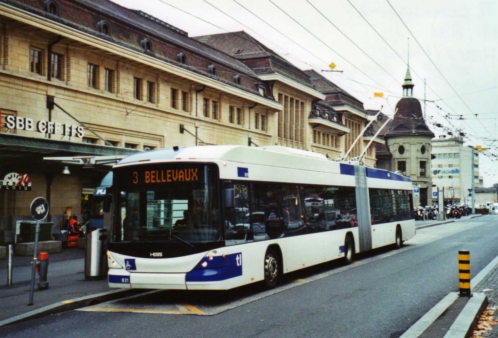 TL Lausanne Nr. 831 Hess/Hess Gelenktrolleybus am 19. November 2009 Lausanne, Bahnhof