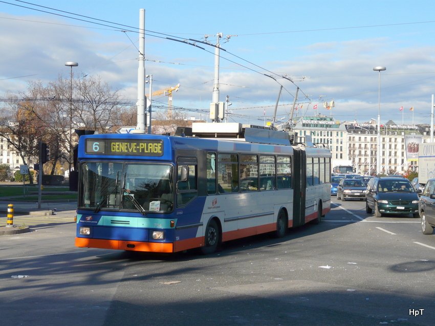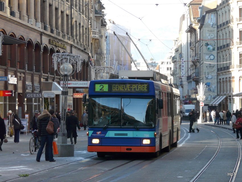 TPG - NAW-Hess-Siemens BGT 5-25 Nr.706 unterwegs auf der Linie 2 in der Stadt Genf am 11.12.2009