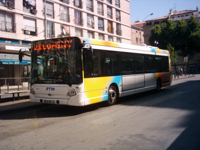 Heuliez GX 327 in Marseille. Im Fuhrpark befinden sich 87 Solobusse dieses Typs mit den Wagenummern 1101 bis 1187.