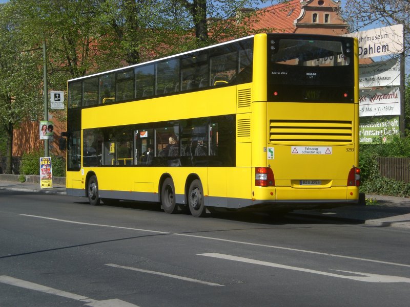 MAN Lion's City DD (Doppelstock) auf der Linie X11 nach S-Bahnhof Schöneweide am U-Bahnhof Dahlem-Dorf.
