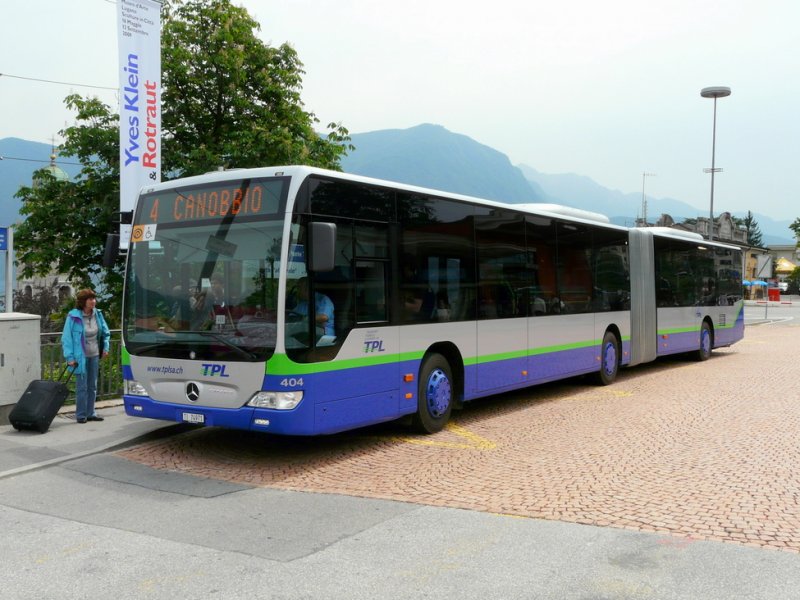 TPL - Mercedes Citaro Gelenkbus Nr.404 TI 74971 unterwegs auf der Linie 4 bei den Haltestellen beim Bahnhof von Lugano am 13.05.2009