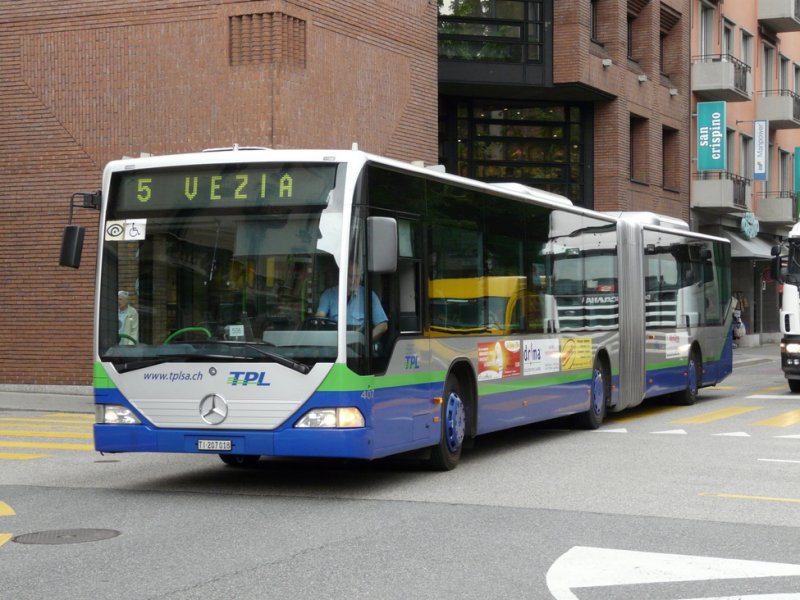 TPL - Mercedes Citaro Gelenkbus Nr.401 TI 207012 unterwegs auf der Linie 3 in der Stadt Lugano am 13.05.2009