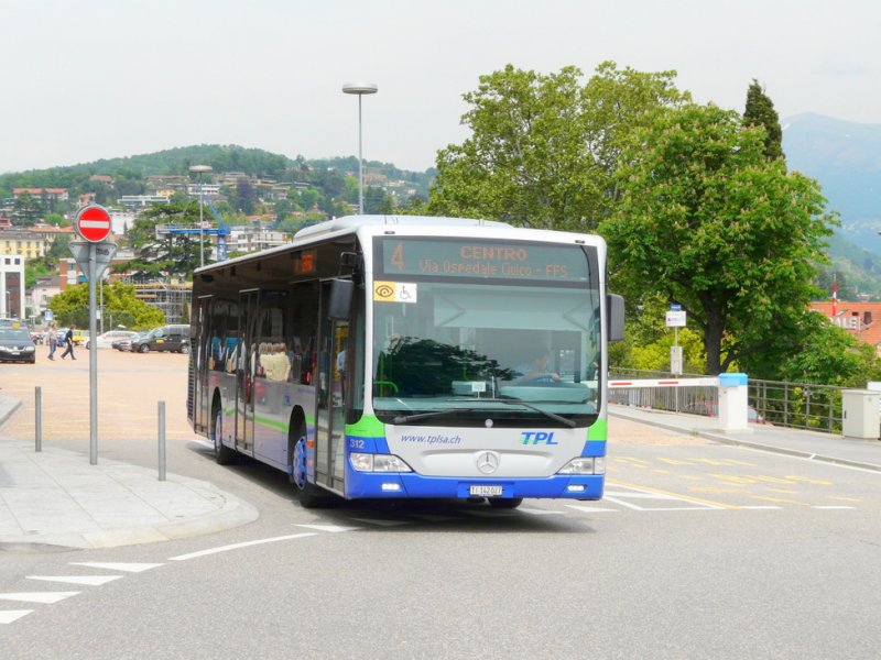 TPL - Mercedes Citaro Bus Nr.312 TI 142027 unterwegs auf der Linie 4 bei den Haltestellen beim Bahnhof von Lugano am 13.05.2009