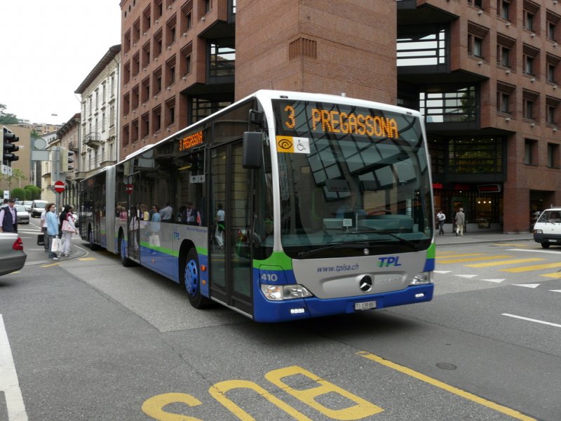 TPL - Mercedes Citaro Gelenkbus Nr.410 TI 139887 unterwegs auf der Linie 3 in der Stadt Lugano am 13.05.2009