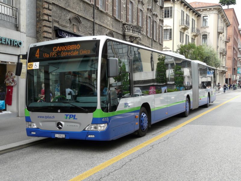 TPL - Mercedes Citaro Gelenkbus Nr.413 TI 139461 unterwegs auf der Linie 4 in der Stadt Lugano am 13.05.2009