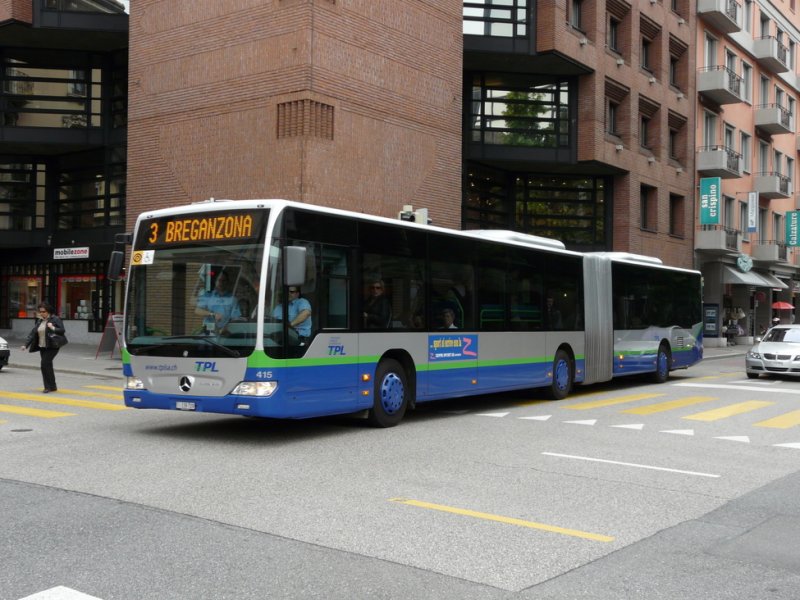 TPL - Mercedes Citaro Gelenkbus Nr.415 TI 139729 unterwegs auf der Linie 3 in der Stadt Lugano am 13.05.2009