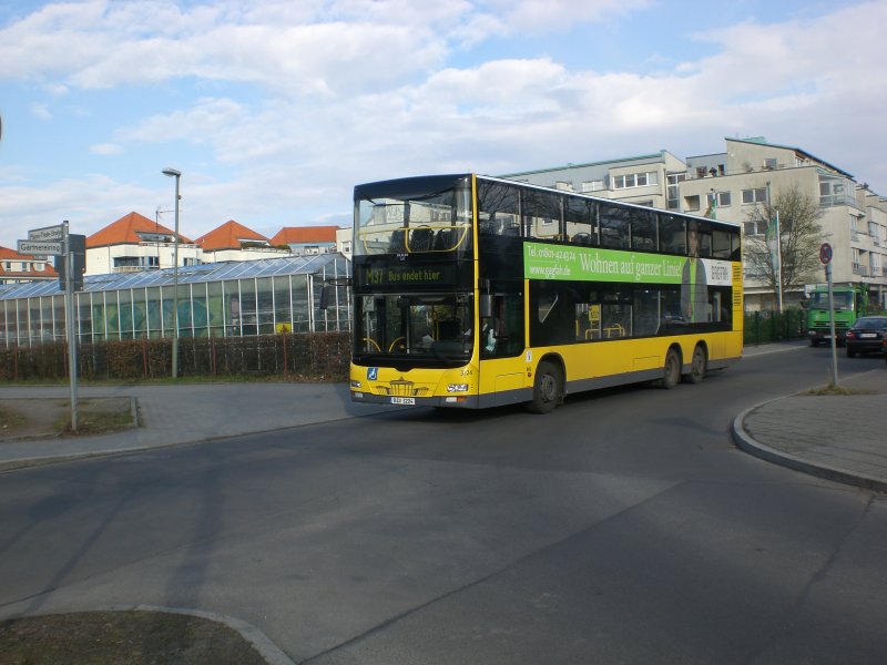 MAN Lion's City DD (Doppelstock) auf der Linie M37 an der Haltestelle Staaken Hahneberg.