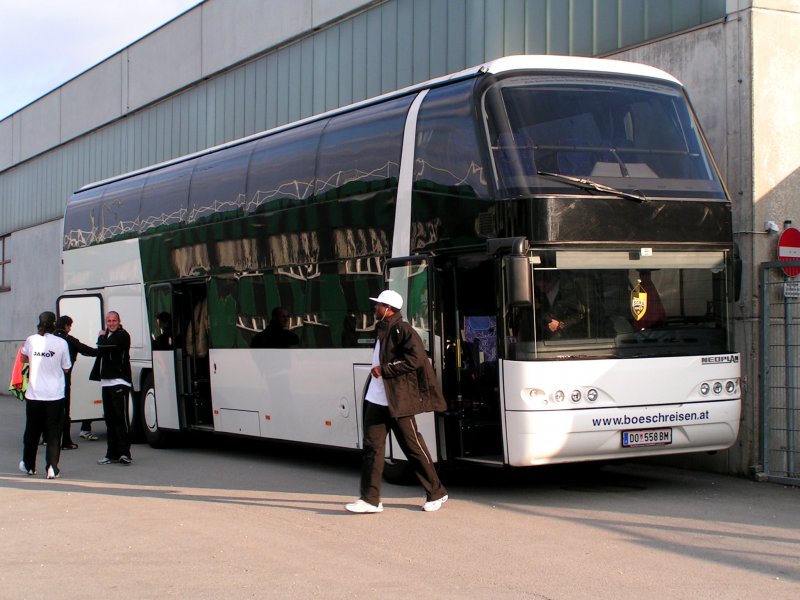 NEOPLAN-skyliner bringt die Spieler des SC-ALTACH anlässlich des Bundesligaspieles vor das FILL-Metallbaustadion; 090321