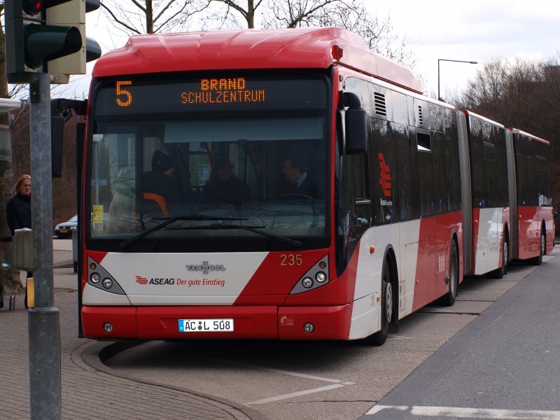 Ein Van Hool AGG 300 Niederflurdoppelgelenkbus der ASEAG von innen.