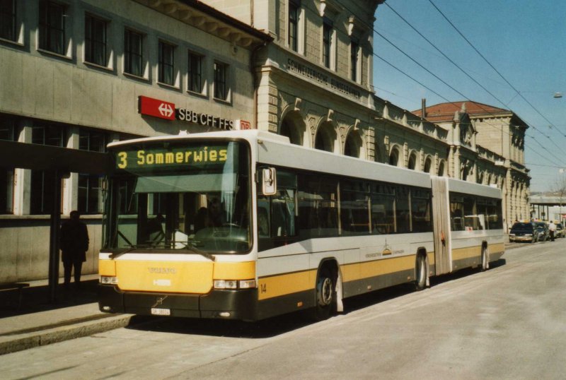 Bern Mobil - Volvo 7700 Nr.801 BE 612801 unterwegs auf der Linie 14 in Bern am 10.01.2009
