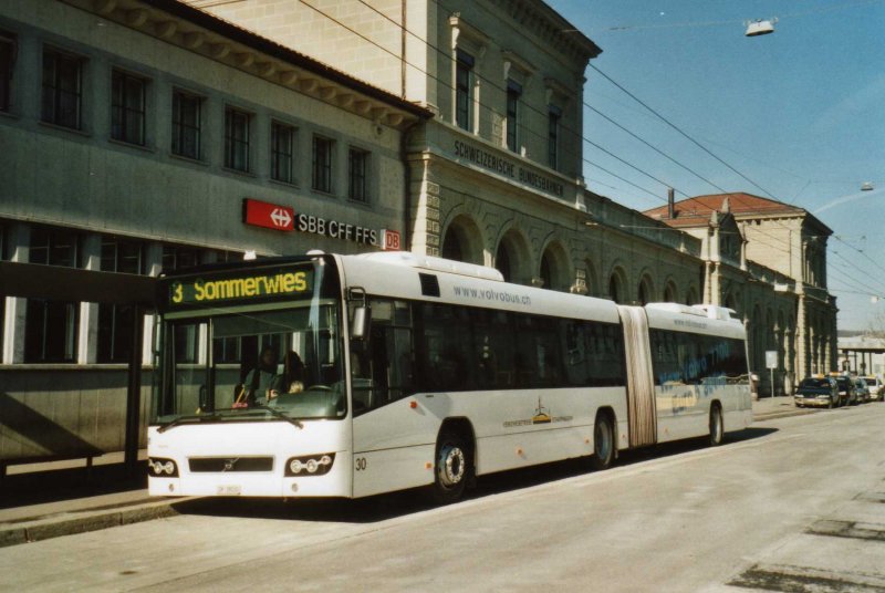 VBSH Schaffhausen Nr. 30/SH 38'030 Volvo am 18. Februar 2009 Schaffhausen, Bahnhof (angemietet als Ersatz für den defekten Gelenktrolleybus Nr. 114)