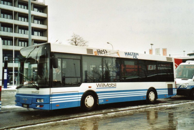 WilMobil, Wil Nr. 251/SG 143'903 Volvo/Hess (ex BOS Wil Nr. 22) am 18. Februar 2009 Wil, Bahnhof