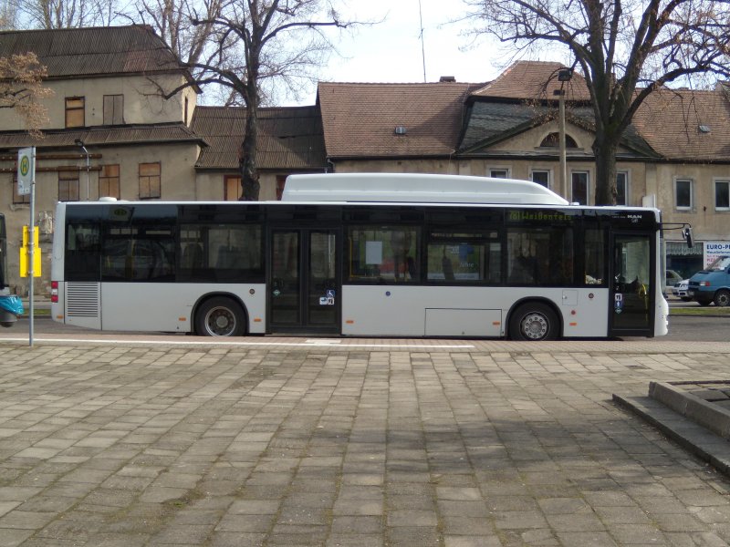 BLK-V1007, ein Lion´s City Ü CNG, steht am 18.03.2009 auf dem Busbahnhof von Weißenfels in Pausenstellung.