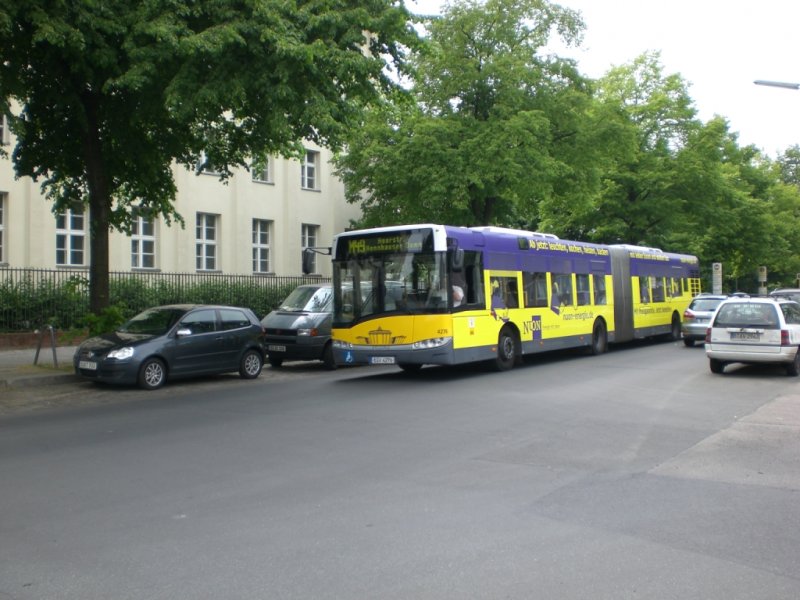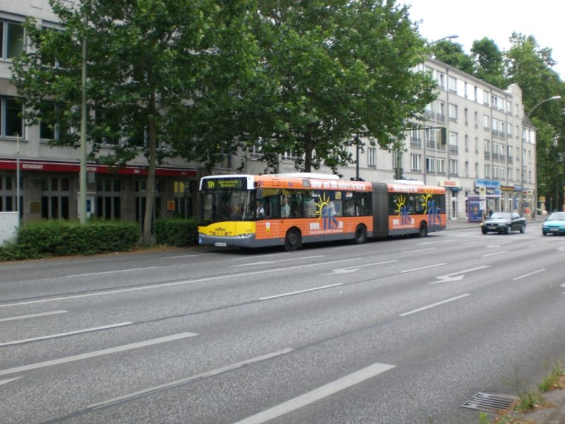 Solaris Urbino auf der Linie 104 nach Neu-Westend Brixplatz an der Haltestelle Treptow Puschkinallee/Elsenstraße.