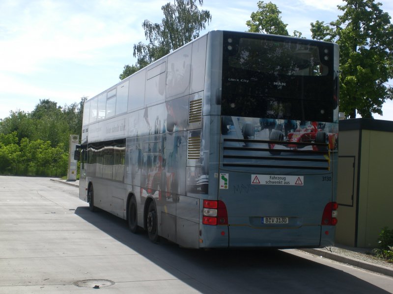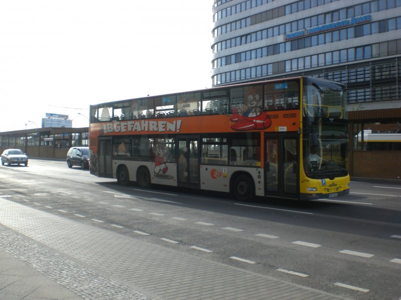 MAN Lion's City DD (Doppelstock) auf Betriebsfahrt am S-Bahnhof Landsberger Allee.