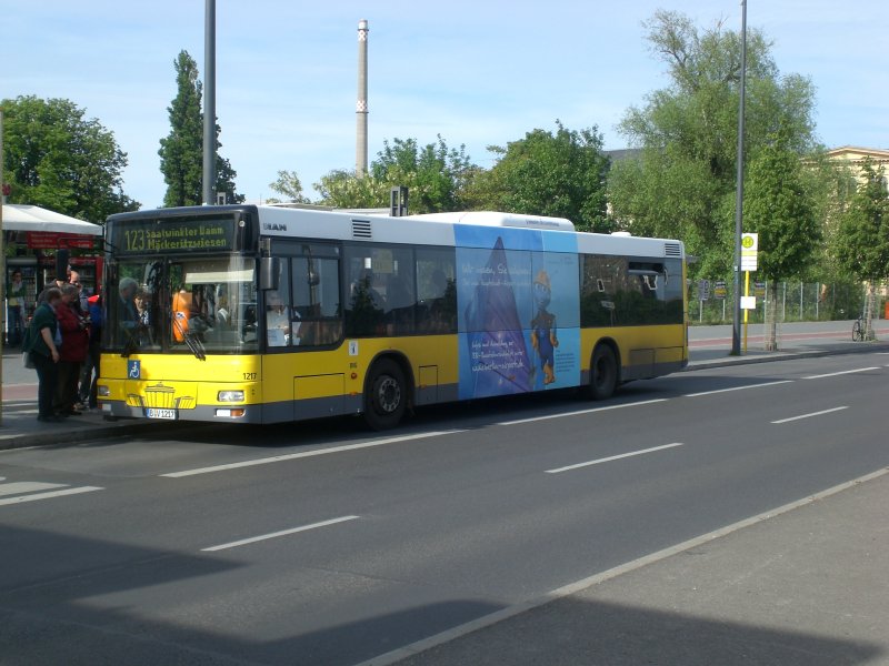 MAN Niederflurbus 2. Generation auf der Linie 123 nach Saatwinkler Damm/Mäckeritzwiesen am Hauptbahnhof.