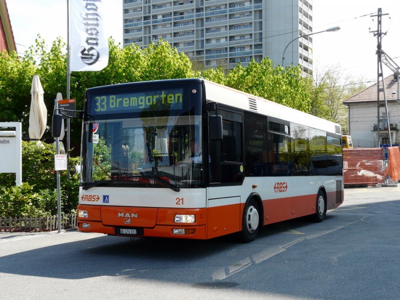 RBS - MAN Nr.21 BE 476321 unterwegs auf der Linie 33 bei der Haltestelle beim Bahnhof Worblaufen am 01.05.2009