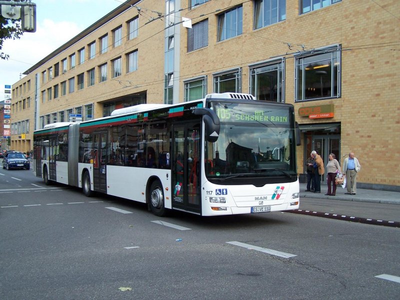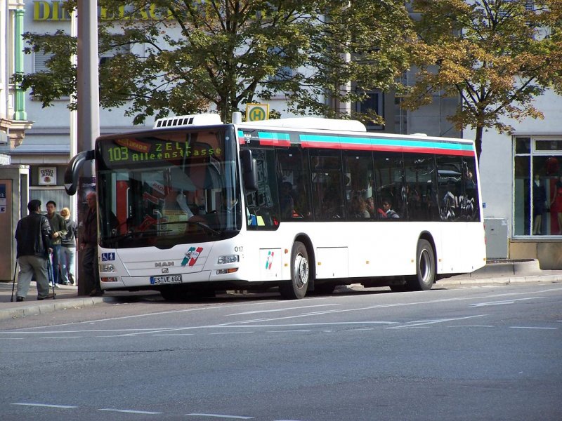 Es befinden sich auch 3 Lion's City solobusse in Esslingen. Hier Wagen 017 am 27/09/08.