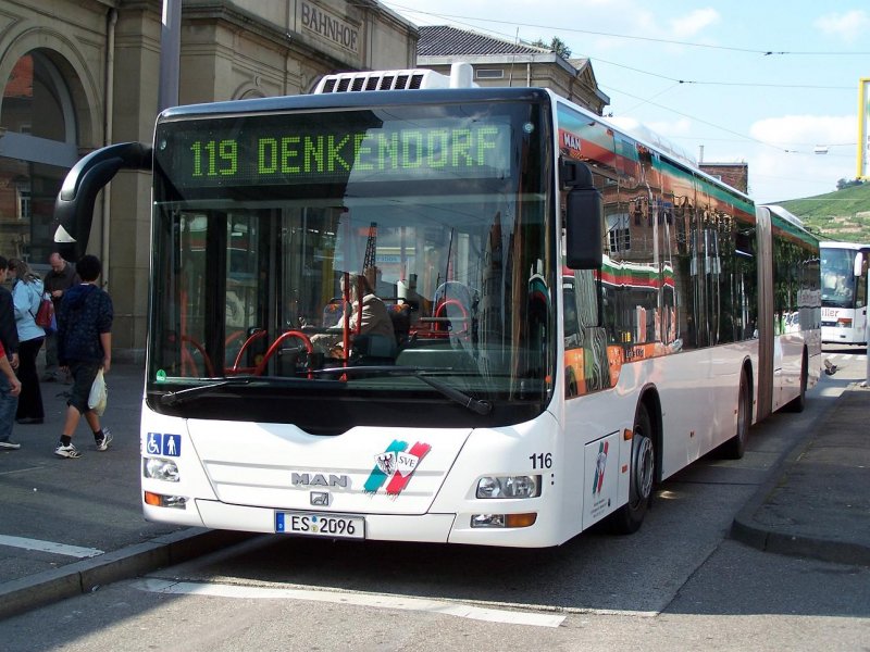 Einer der drei Lion's City Gelenkbusse in Esslingen. Hier Wagen 116 am 27/09/08.