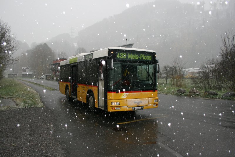 Für die Linien Sargans - Mels - Riet / - Plons hatte PU Schett, Sargans, zwei MAN A35 in seiner Flotte. Das Bild zeigt den SG 184'266 (2002) am 10.11.2007 an der Endstation Plons.