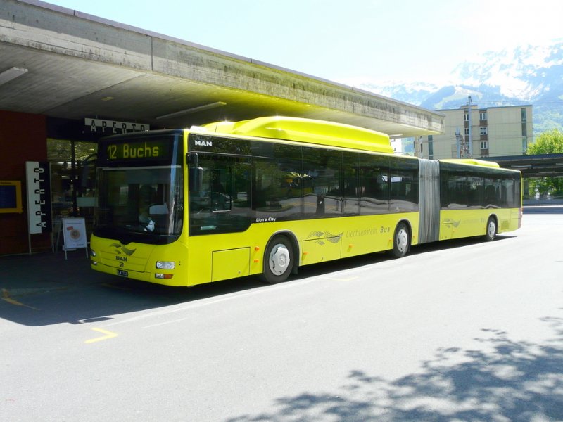 Lichtenstein Bus - MAn Lion`s City Gelenkbus FL 11513 bei der Haltestell neben den Bahnhof von Sargans am 07.05.2009