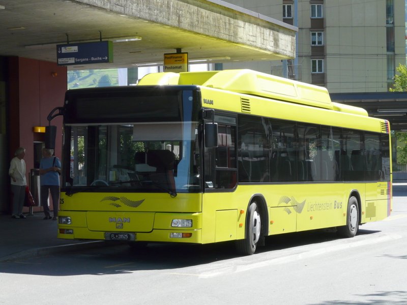 Lichtenstein Bus - MAN Lion`s City FL 28521 bei der Haltestell vor den Bahnhof von Sargans am 07.05.2009