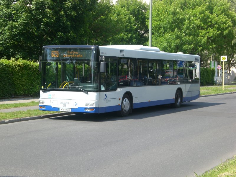 MAN Niederflurbus 2. Generation auf der Linie 629 nach Teltow Oderstraße an der Haltestelle Teltow, Warthestr/Zum Techno Terrain.