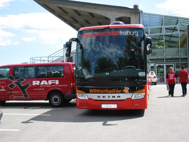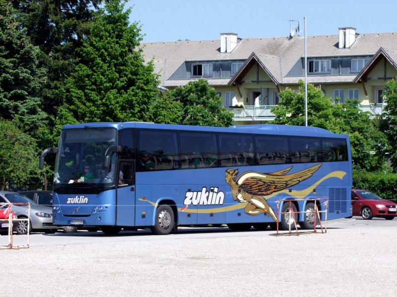 VOLVO-Bus der Fa.Zuklin erreicht den Parkplatz vom FILL-Metallbaustadion in Ried; 090517