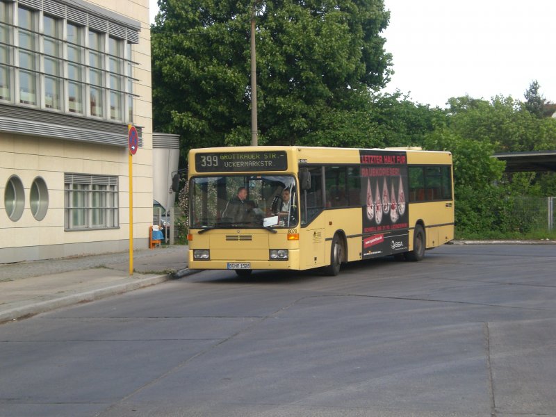 Mercedes-Benz O 405 N (Niederflur-Stadtversion) auf der Linie 399 nach Kaulsdorf Grottkauer Straße am S-Bahnhof Kaulsdorf.