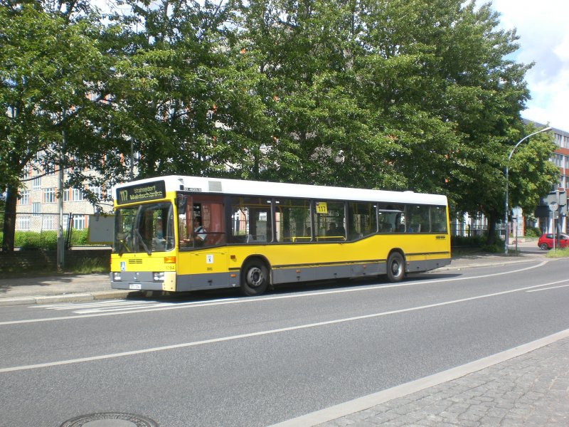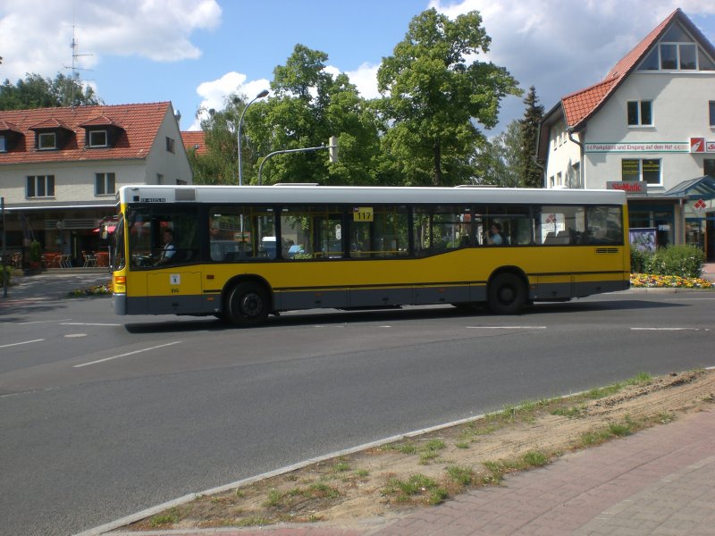 Mercedes-Benz O 405 N (Niederflur-Stadtversion) auf der Linie 117 nach Stahnsdorf Waldschänke an der Haltestelle Kleinmachnow Freibad Kiebitzberg.