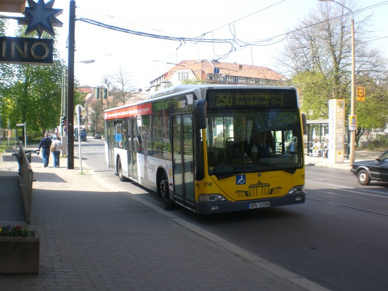 Mercedes-Benz O 530 I (Citaro) auf der Linie 250 nach Niederschönhausen Bucholzer Straße an der Haltestelle Niederschönhausen Hermann-Hesse-Straße/Waldstraße.