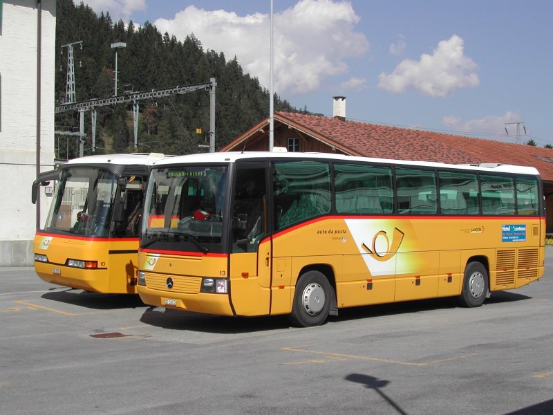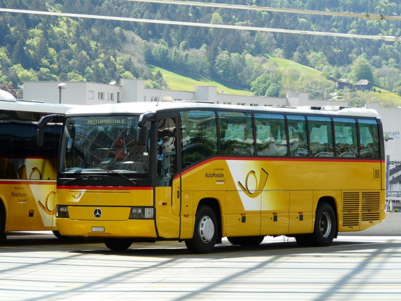 Postauto - Mercedes O 404 TI 215030 bei den Postautohaltestellen über dem Bahnhof von Chur am 07.05.2009