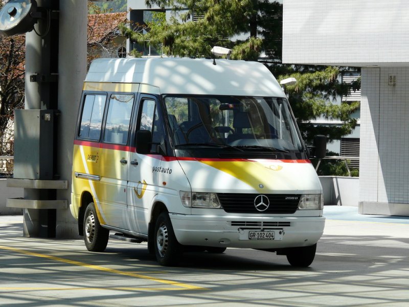 Postauto - Mercedes 208 D GR 102404 bei den Bushaltestellen über dem Bahnhof von Chur am 07.05.2009