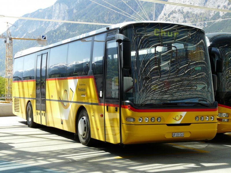 Postauto - Neoplan GR 159351 bei den Postautohaltestellen über dem Bahnhof von Chur am 07.05.2009