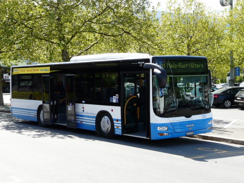 Sarganserland Werdenberg - MAN Lion`s City Bus Nr.331 SG 297511 bei der Haltestelle neben dem Bahnhof von Sargans am 07.05.2009