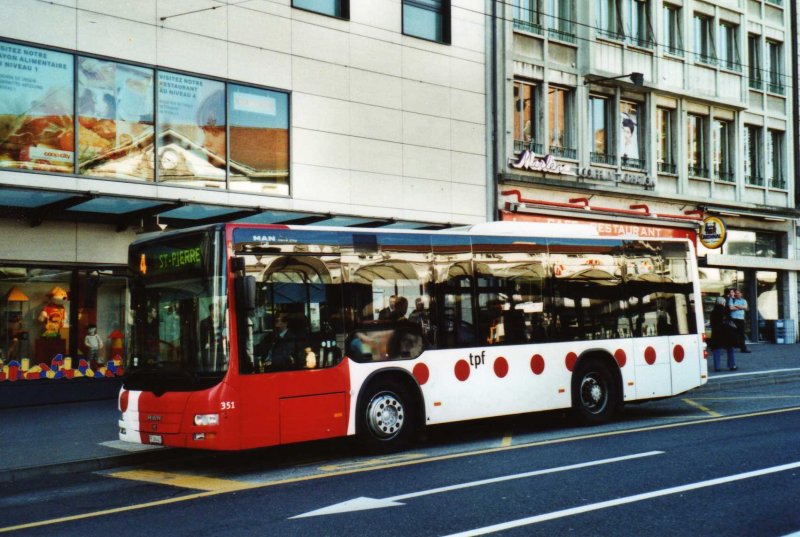 TPF Fribourg Nr. 351/FR 300'401 MAN am 25. April 2009 Fribourg, Bahnhof