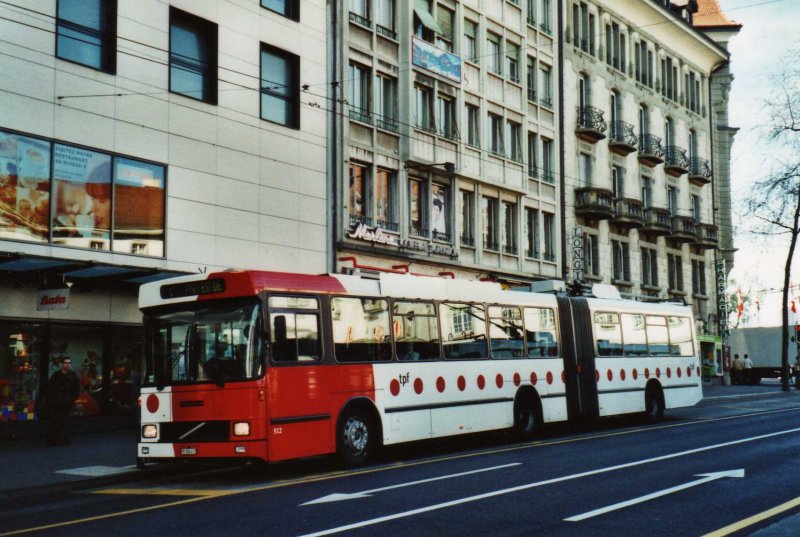 TPF Fribourg Nr. 512/FR 300'417 Volvo/Hess Gelenkduobus (ex TF Fribourg Nr. 112) am 25. April 2009 Fribourg, Bahnhof